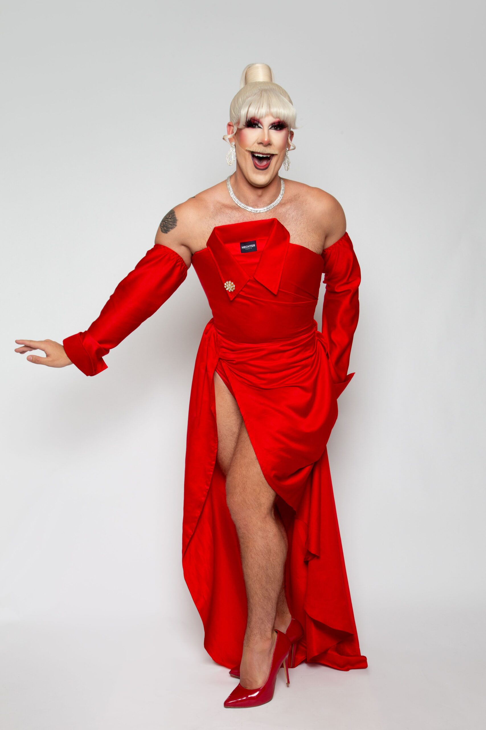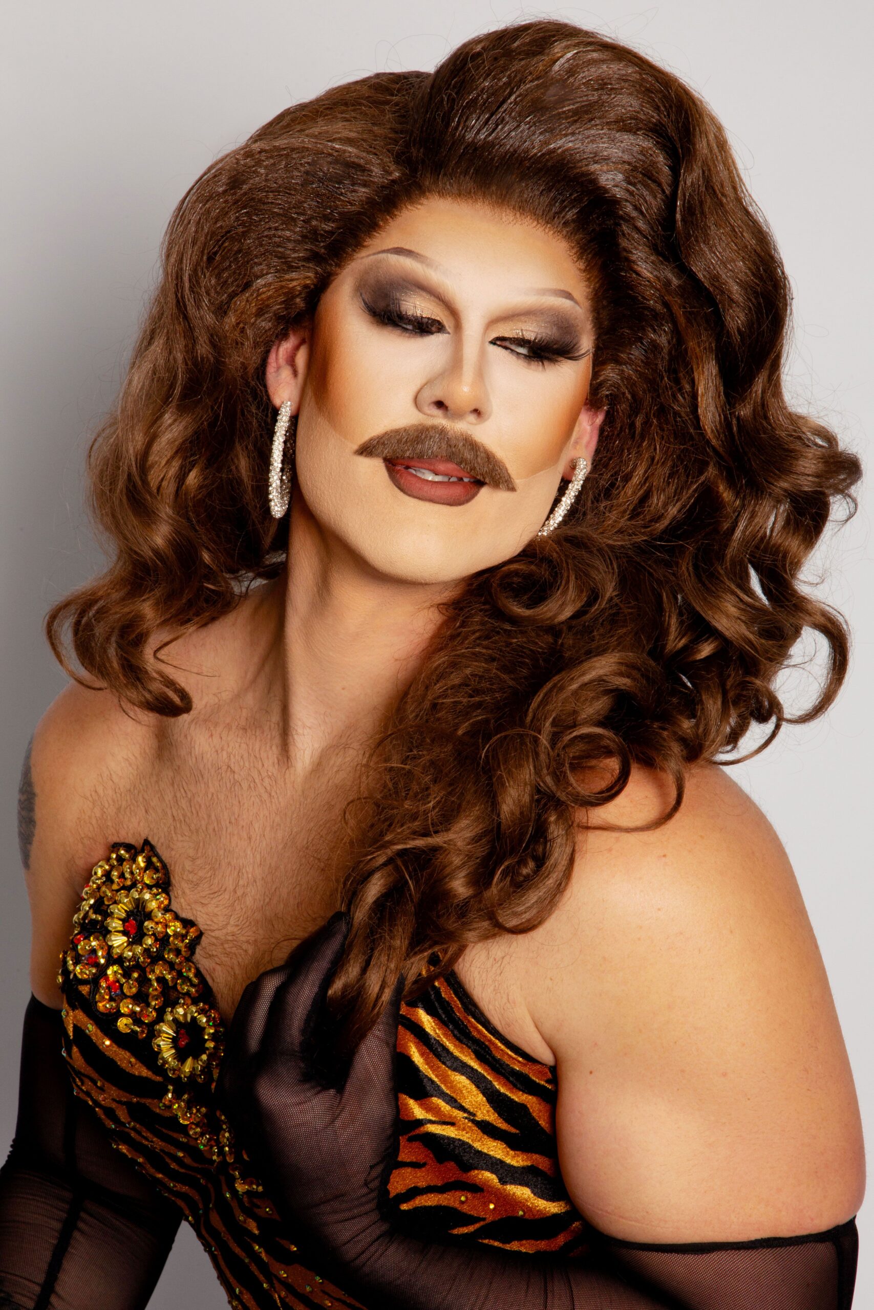 With a bold moustache that sets them apart, Kalin captivates audiences through exceptional burlesque talents and a charismatic presence. Known for their quick wit and standout hosting skills, Kalin blends traditional drag elements with a distinctive flair, delivering captivating performances that redefine expectations. Their unique style and inventive approach make Kalin Klein a standout performer in the world of drag.